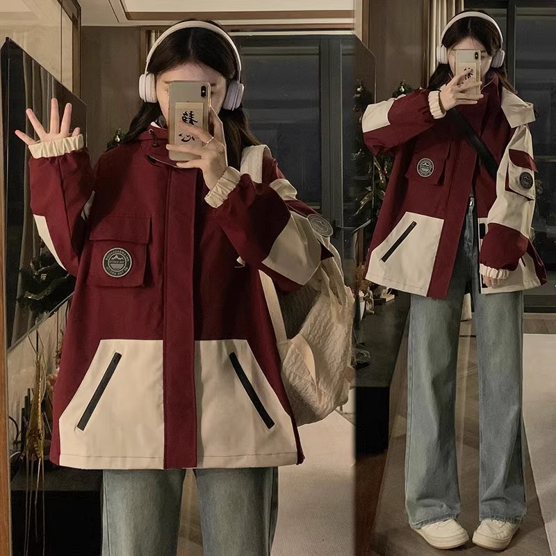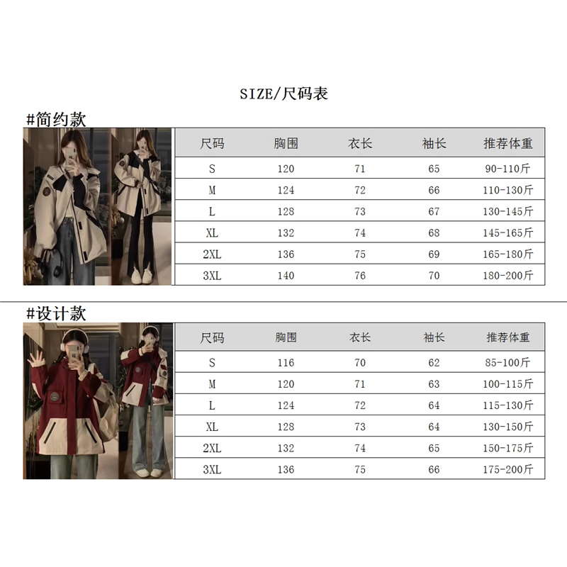 外套女冬棉服 学生胖MM工装 加棉加厚冲锋衣2025春秋新款 宽松大码