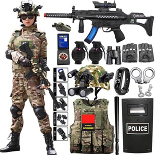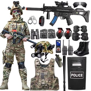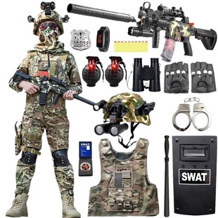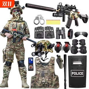 备金属冲锋头盔 软弹枪迷彩衣服装 儿童特种兵套装 玩具枪男孩军装