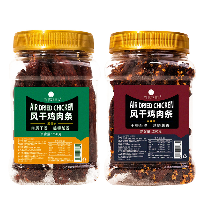 物源故事风干鸡肉条250g罐装 高蛋白香辣五香味解馋零食鸡肉干耐嚼