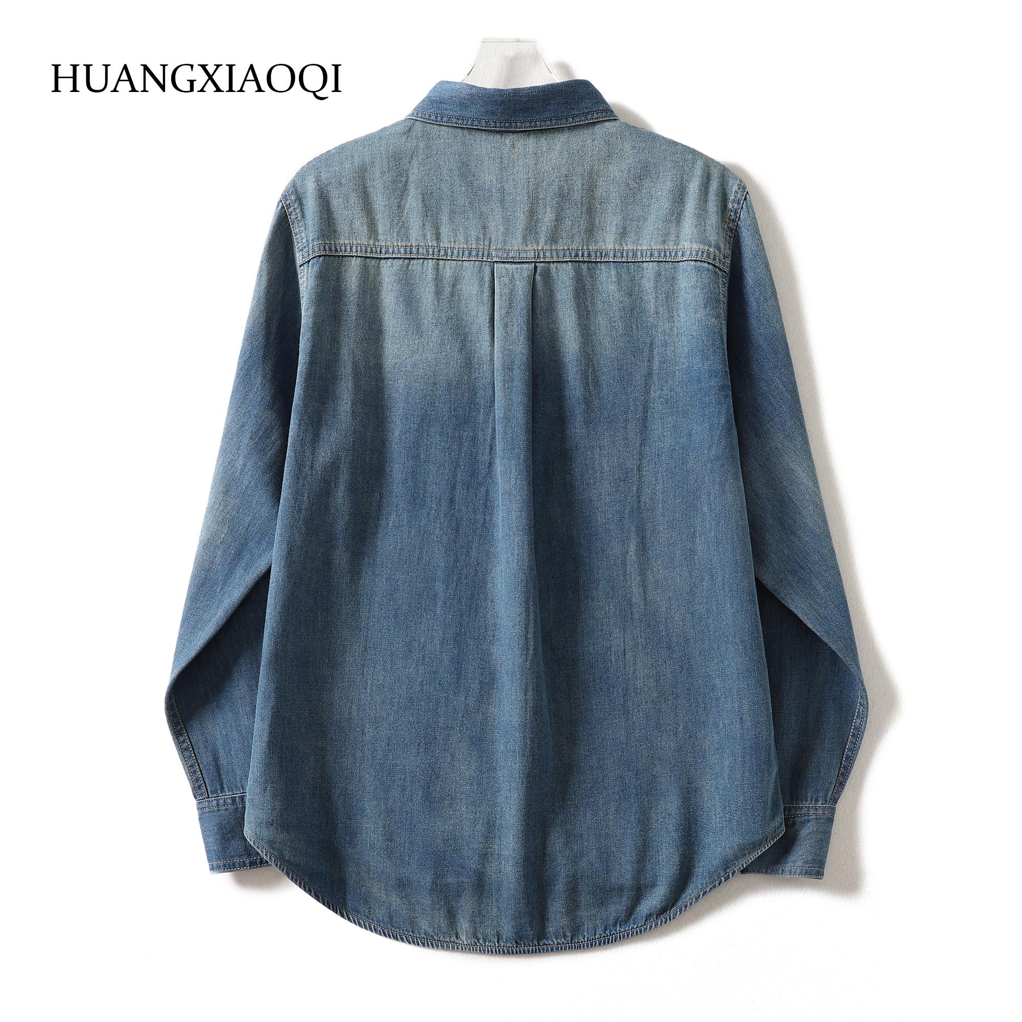 宽松百搭休闲衬衣上衣 翻领牛仔衬衫 Huangxiaoqi Cowboy春秋新款