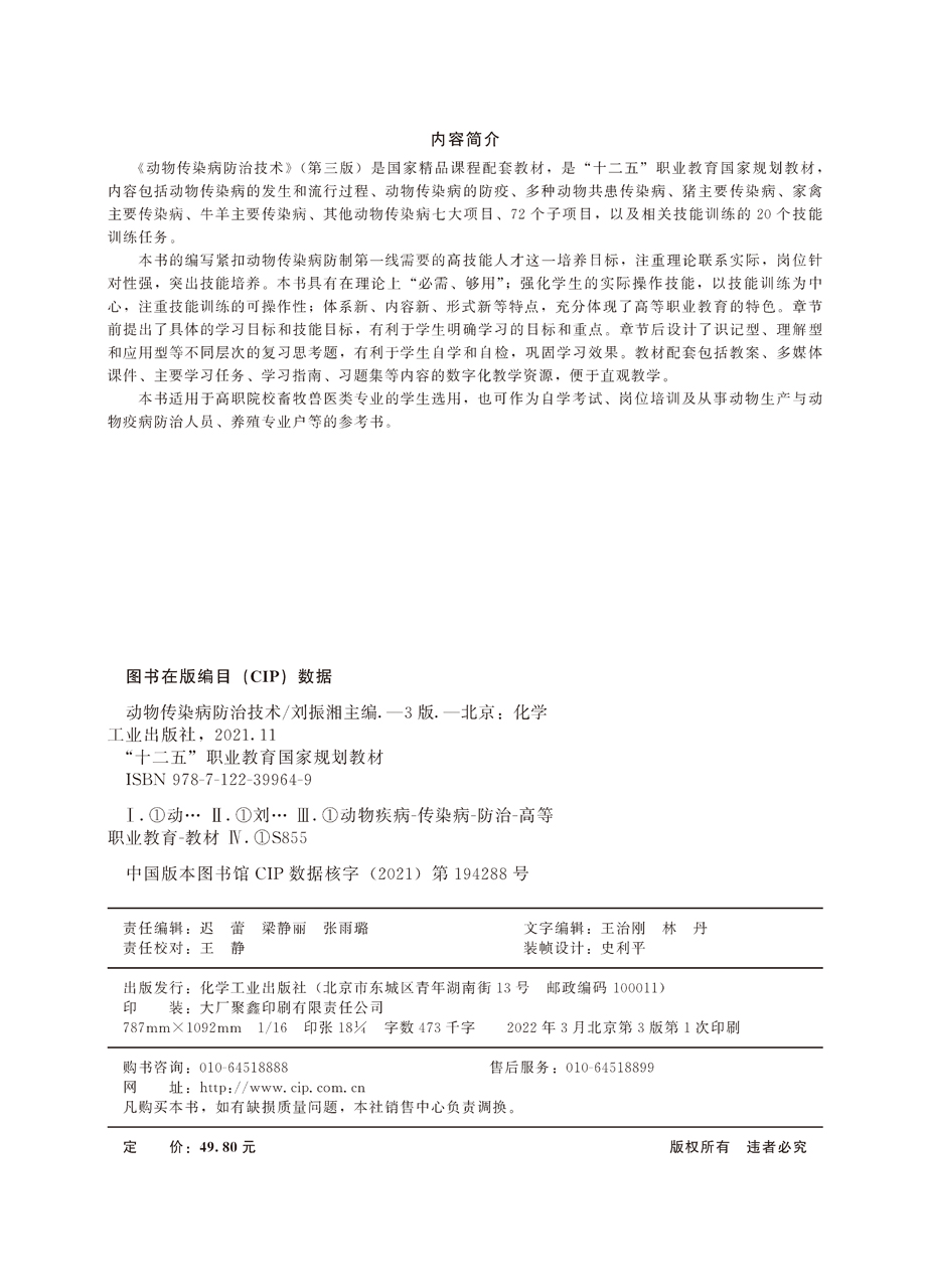 刘振湘 动物传染病预防 第三版 动物传染病治疗书籍 动物传染病治疗预防应用书籍 十二五职业教育国家规划教材 动物传染病防治技术