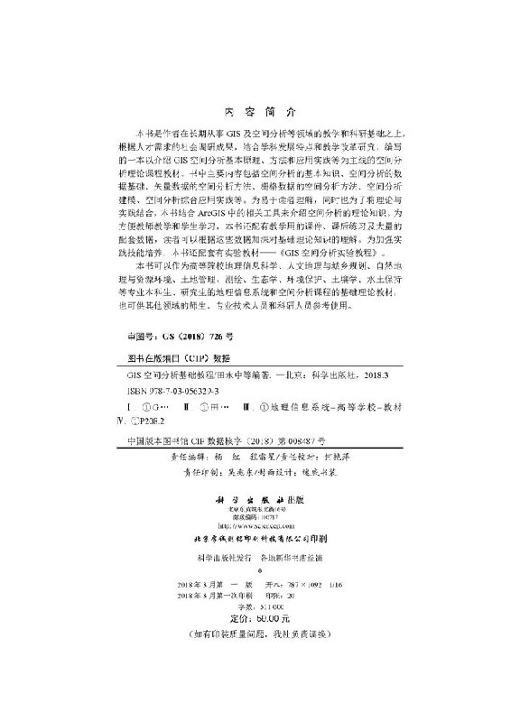 工业技术 等 电子通信 一般性问题书籍 社9787030563293 GIS空间分析基础教程 科学出版 田永中