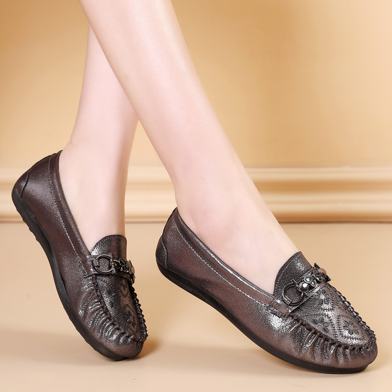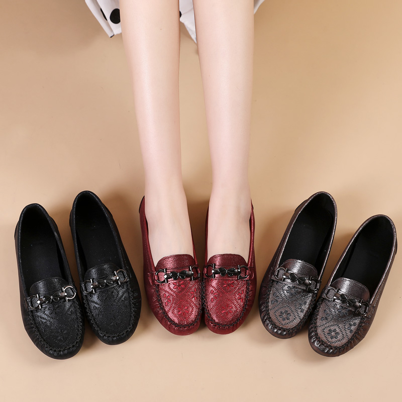 仙女风瓢鞋 秋季 浅口百搭中跟奶奶鞋 大码 真皮单鞋 女鞋 粗跟2025新款