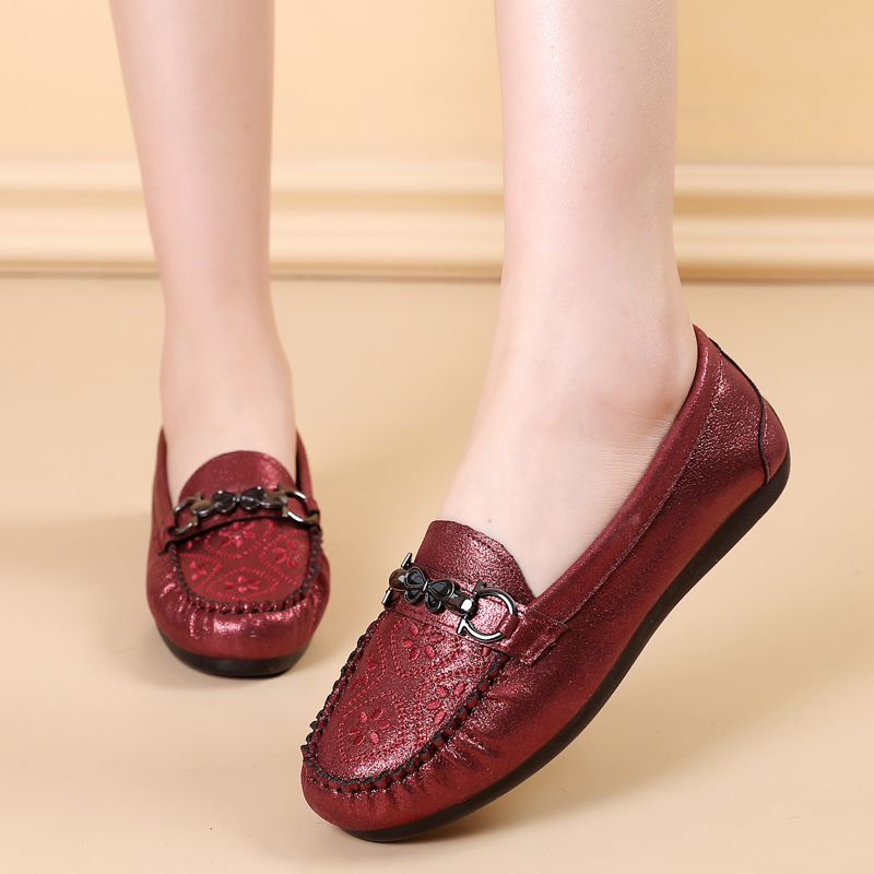 秋季 红色平底鞋 芭蕾法式 浅口婚鞋 达芙妮羊皮单鞋 豆豆鞋 女2025新款