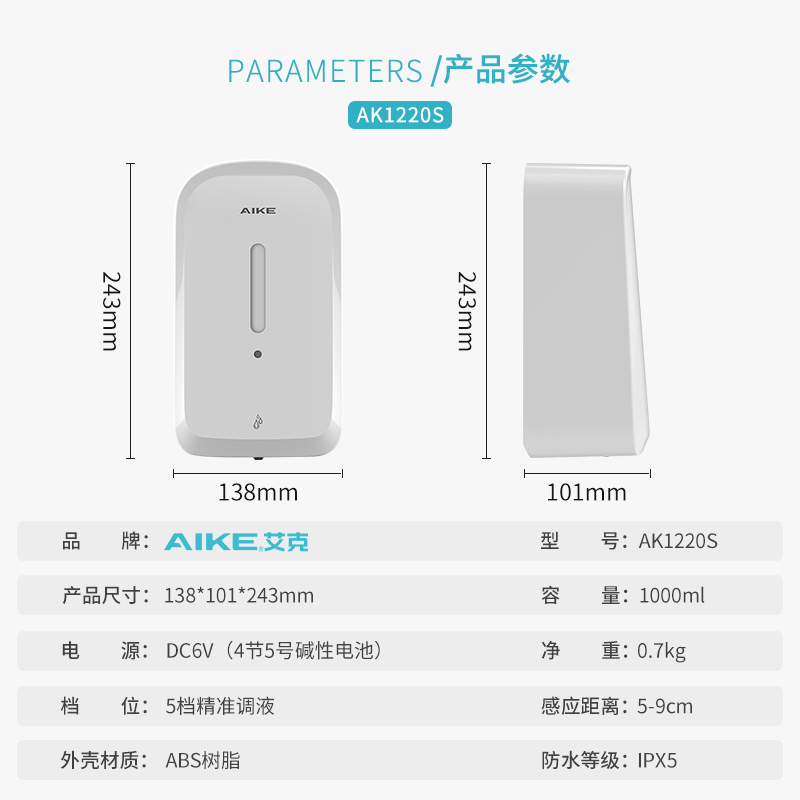 艾克自动洗手机商用卫生间感应皂液器镜柜后壁挂洗手液自动感应器