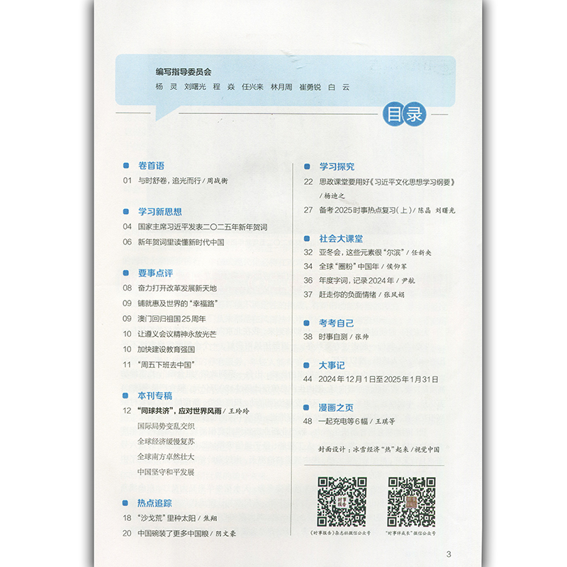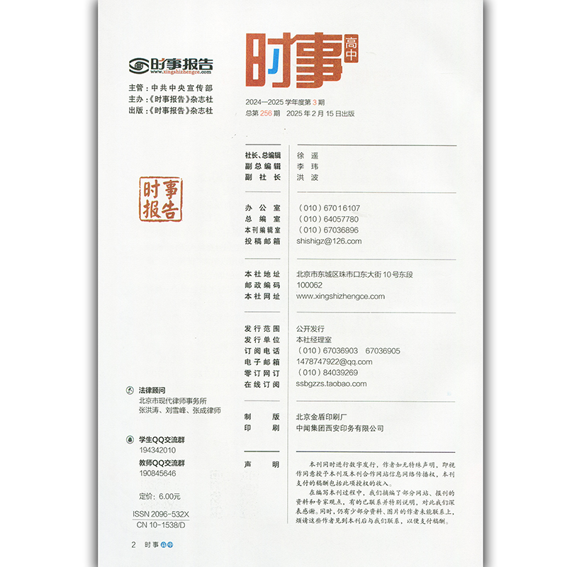 时事报告杂志社 应对世界风雨 高中时事 同球共济 第三期 2025学年高中时事 高考时事报告 总第256期 第3期 2025学年度 2024