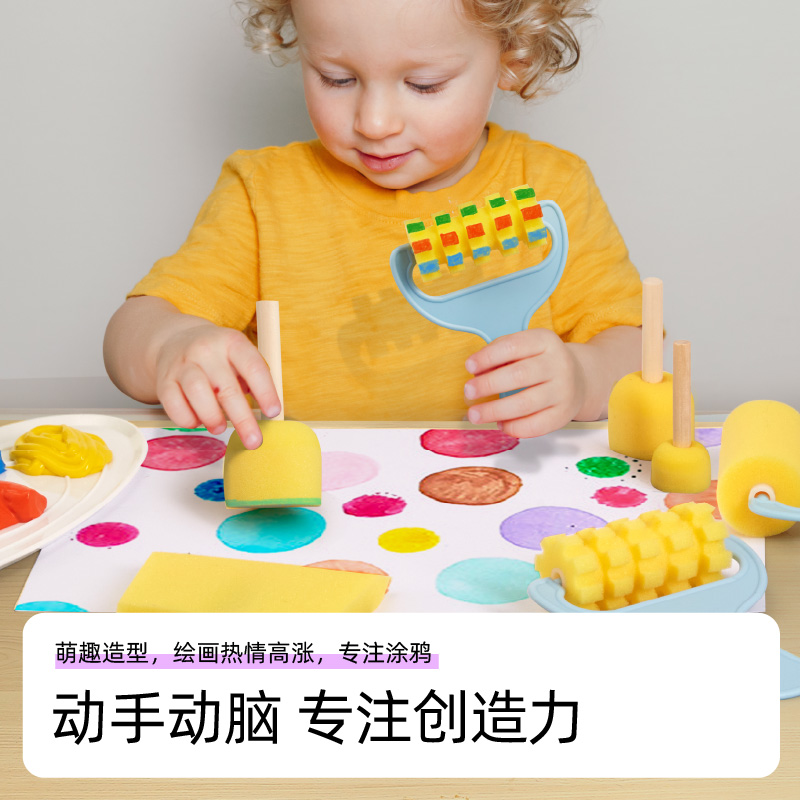 美乐童年海绵印章套装 儿童颜料拓印工具幼儿园画画海绵棒绘画画刷