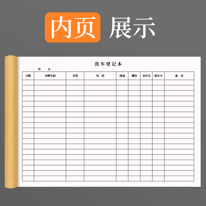 洗车登记本洗车店营业销售登记本汽车修理厂洗车每日营业记录汽车美容汽车常规检查表美容服务单洗车登记表