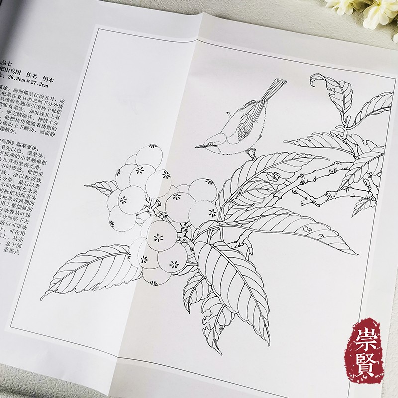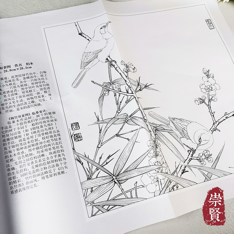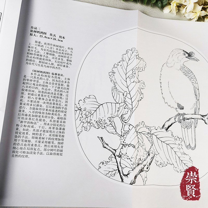 宋人禽鸟小品 内附彩稿等比放大白描画稿初学国画者临摹范本附临摹要诀李晓明绘天津杨柳青画社 实用白描画稿