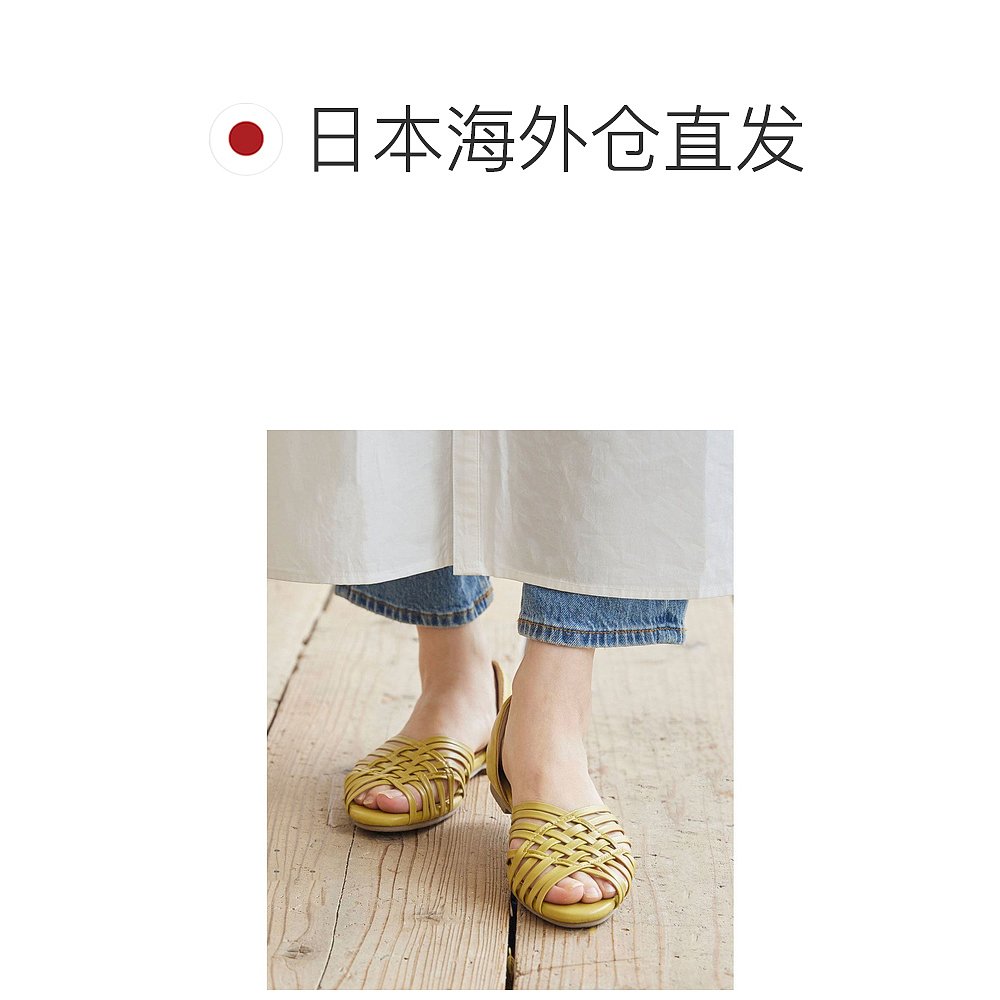 圆头平底交叉针织凉鞋 menue Menue 1063黄色PU 日本直邮