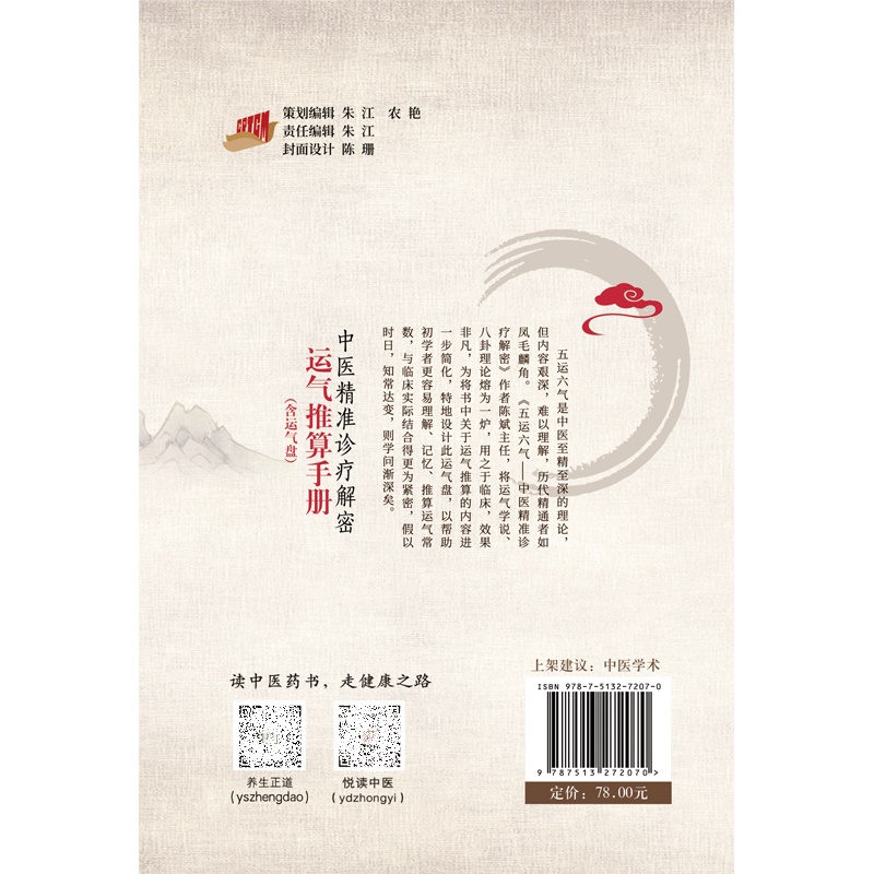 社五运六气中医入门源于黄帝内经运气学说中医书籍中国中医药出版 正版 中医精准诊疗解密运气推算手册含运气盘陈斌编中国中医药出版