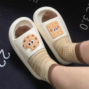 休闲外穿凉拖鞋 新款 男女 可爱饼干夏季 室内防滑踩屎感厚底情侣拖鞋