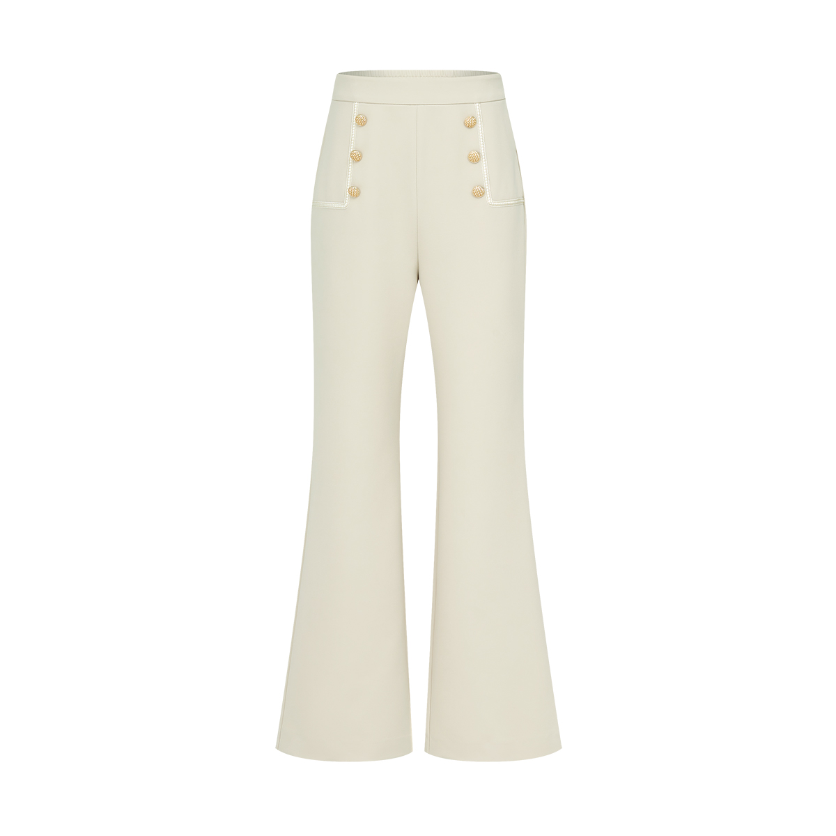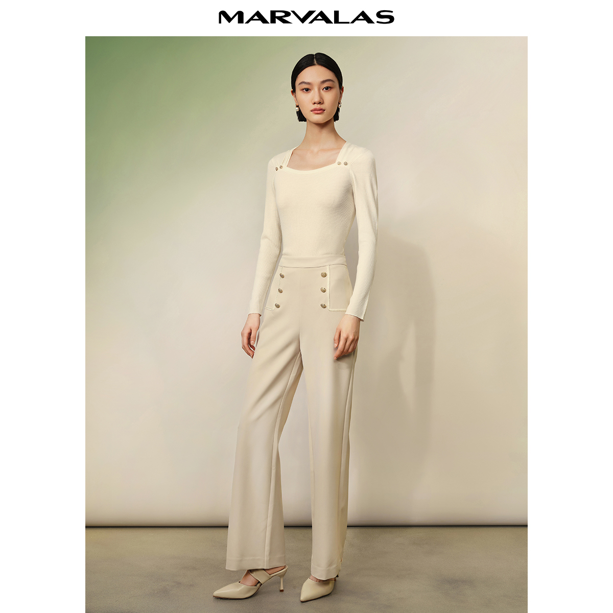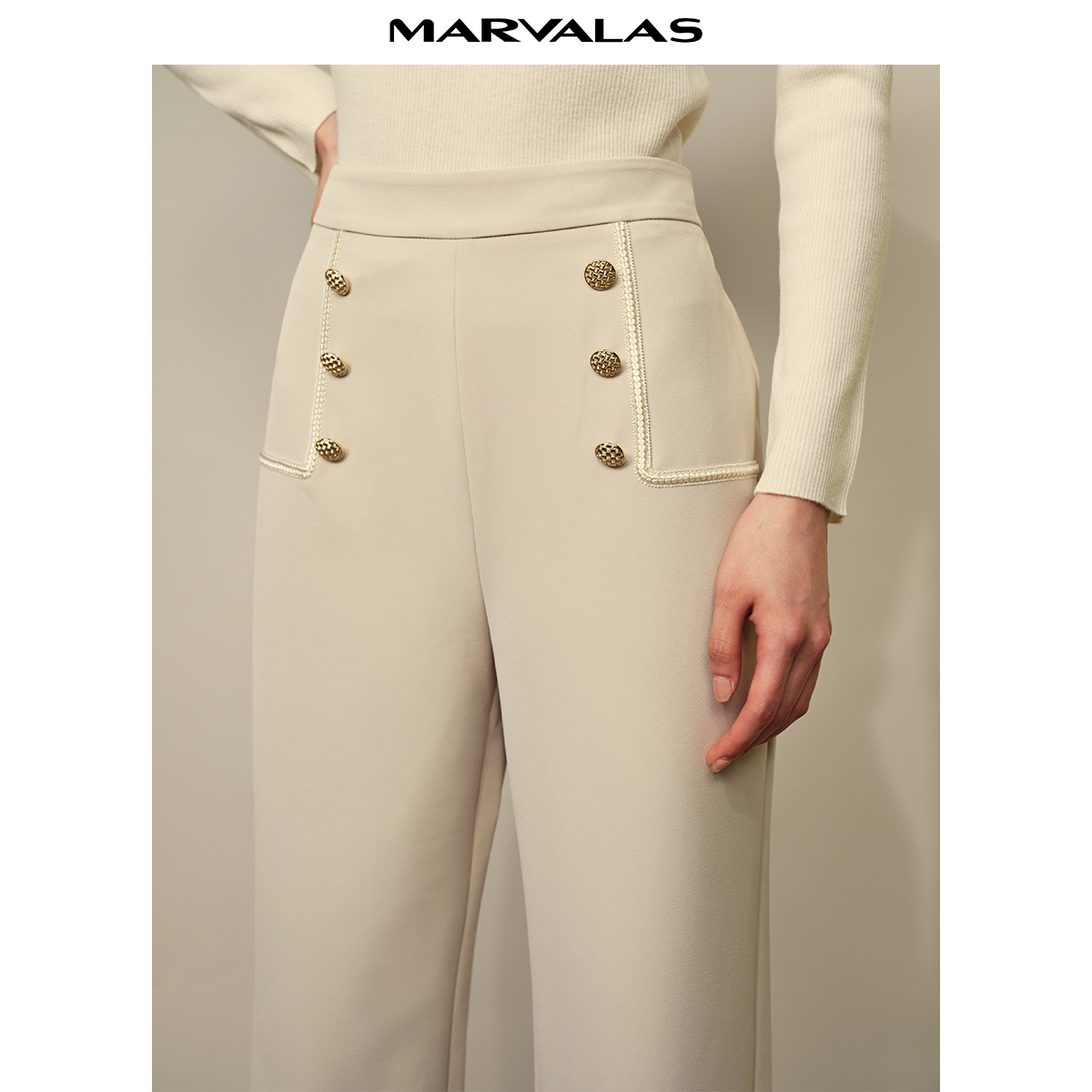 通勤气质简约松紧腰阔腿长裤 新品 2025秋季 曼德诗纯色自然腰休闲裤