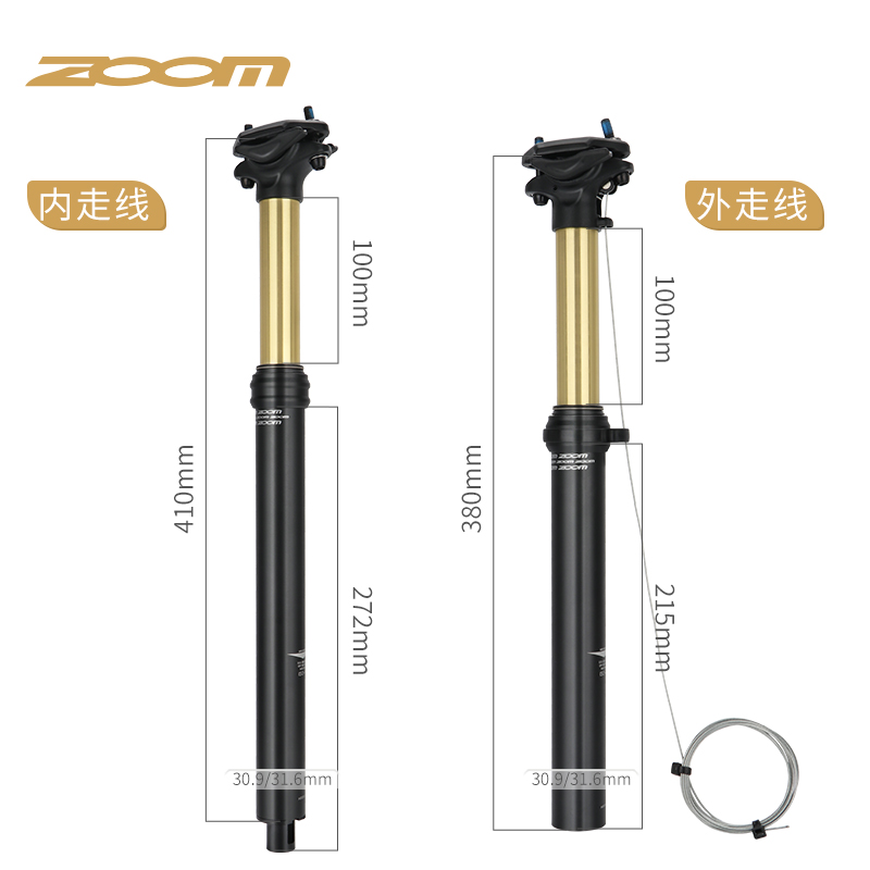 ZOOM信隆自行车升降坐管内 31.6MM 外走线山地车油压线控座杆30.9