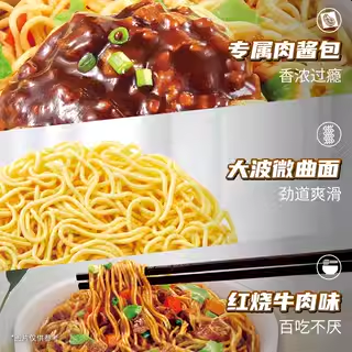 康师傅干拌面方便面12碗整箱装 红烧香辣多种口味混合 批发泡面碗装