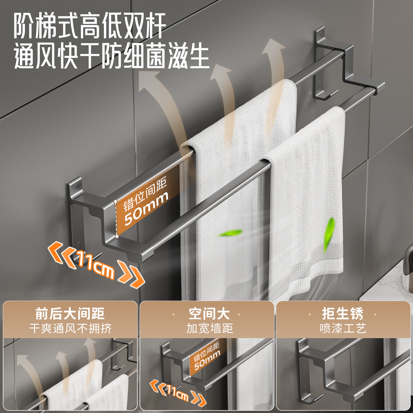 箭牌卫浴枪灰色毛巾架免打孔五金挂件套装 可折叠浴室浴巾架置物架
