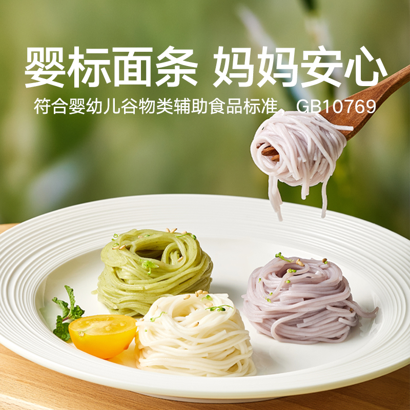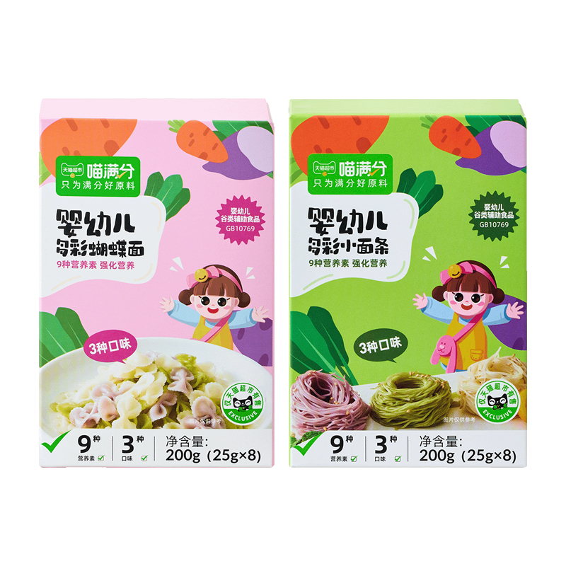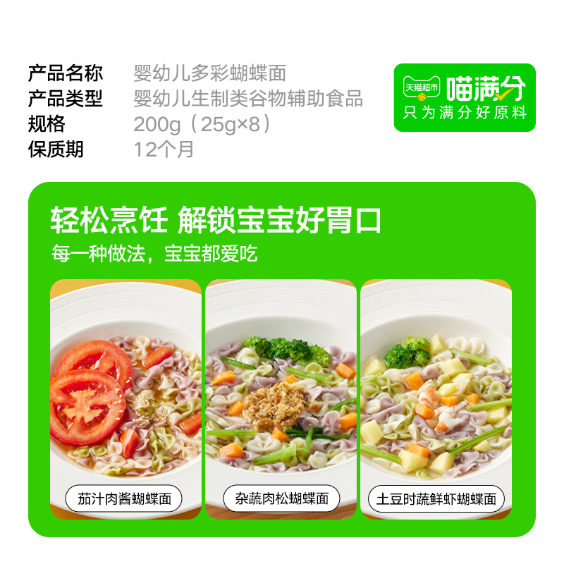 下拉领淘金币喵满分宝宝面6月龄婴儿辅食空心面蝴蝶面无添加盐