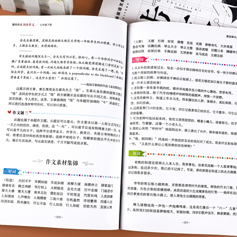 七年级同步作文人教版 上册下册语文教材作文书全套初中生优秀满分作文热点素材积累大全初一7年级语文同步黄冈作文高分范文精选