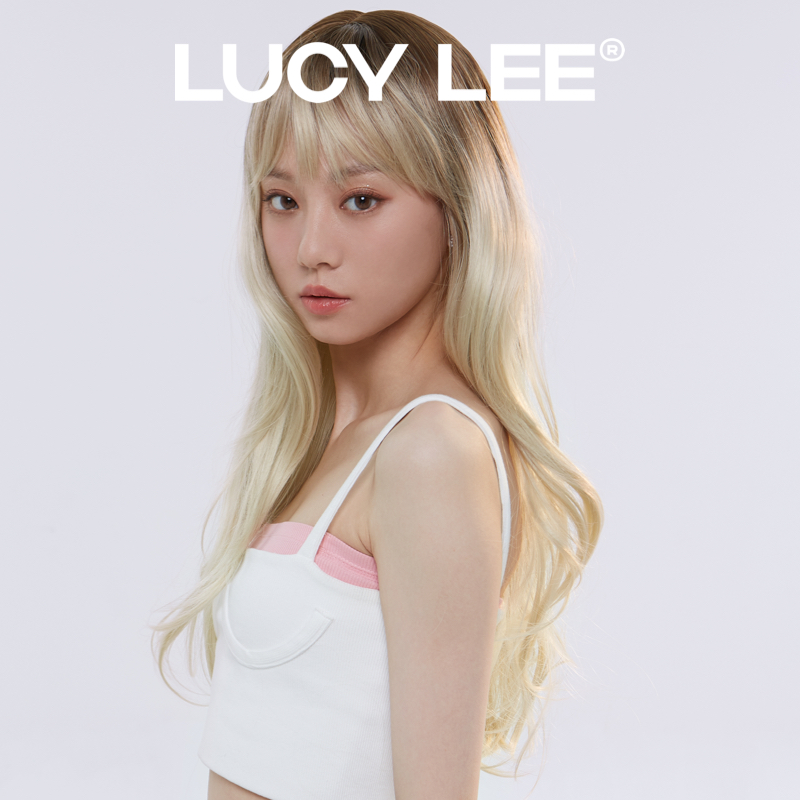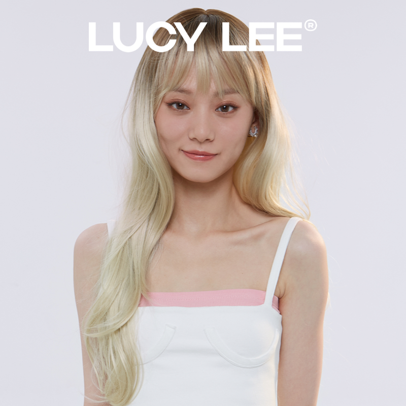 LUCY LEE双色浅金渐变长卷发假发齐刘海女自然透气混血感整顶头套
