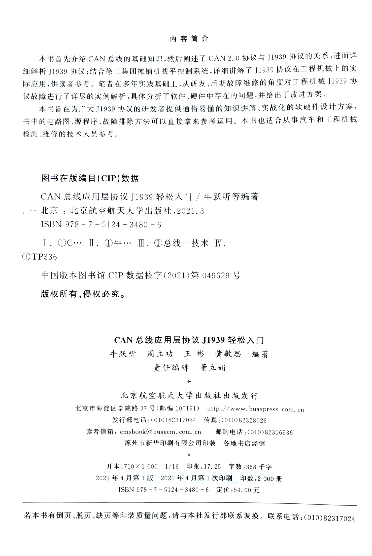 王彬 周立功 黄敏思 著 社9787512434806 CAN总线应用层协议J1939轻松入门 北京航空航天大学出版 牛跃听