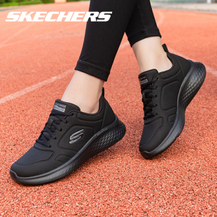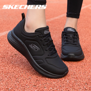 皮面黑色跑步鞋 Skechers斯凯奇女鞋 休闲鞋 女官方旗舰店春季 运动鞋