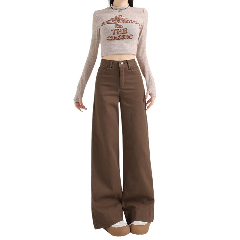 宽松小个子休闲裤 2025新款 子夏薄 女春秋季 自然涩侧拉链阔腿牛仔裤