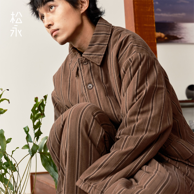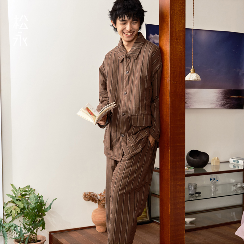 翻领柔软家居服套装 松永冬24新款 长裤 夹棉加厚睡衣长袖 保暖 男士