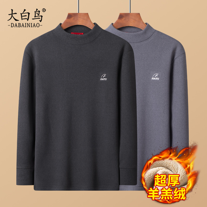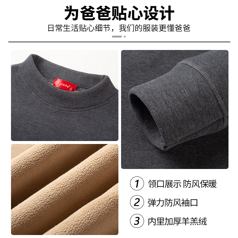 冬季 超厚羊羔绒爸爸保暖内衣中老年人男士 加绒加厚上衣爷爷打底衫