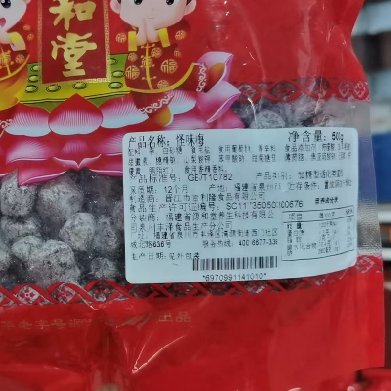源和堂咸杨梅500g袋装 泡水蜜饯福建闽南泉州特产果脯果干休闲零食