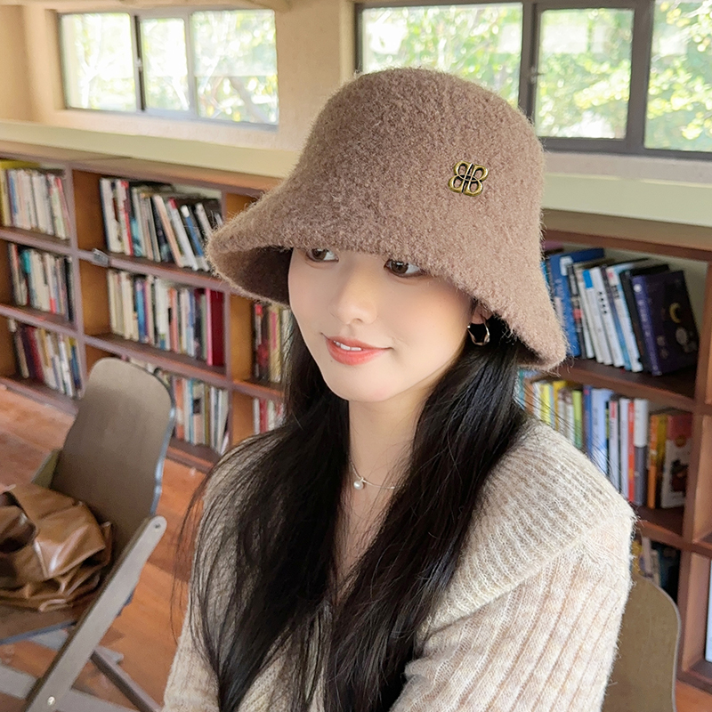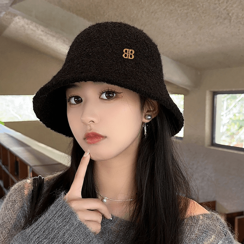 羊羔绒渔夫帽女秋冬新款 水桶帽子黑色百搭保暖盆帽 大头围女士韩版