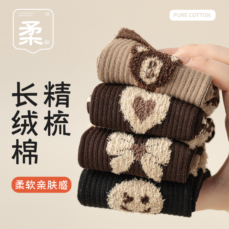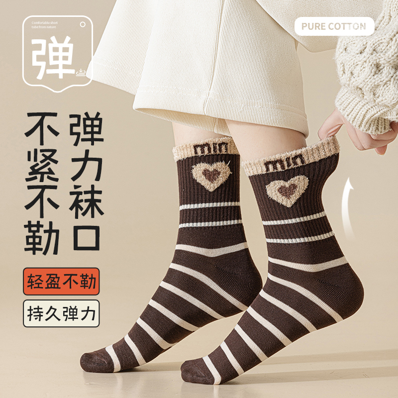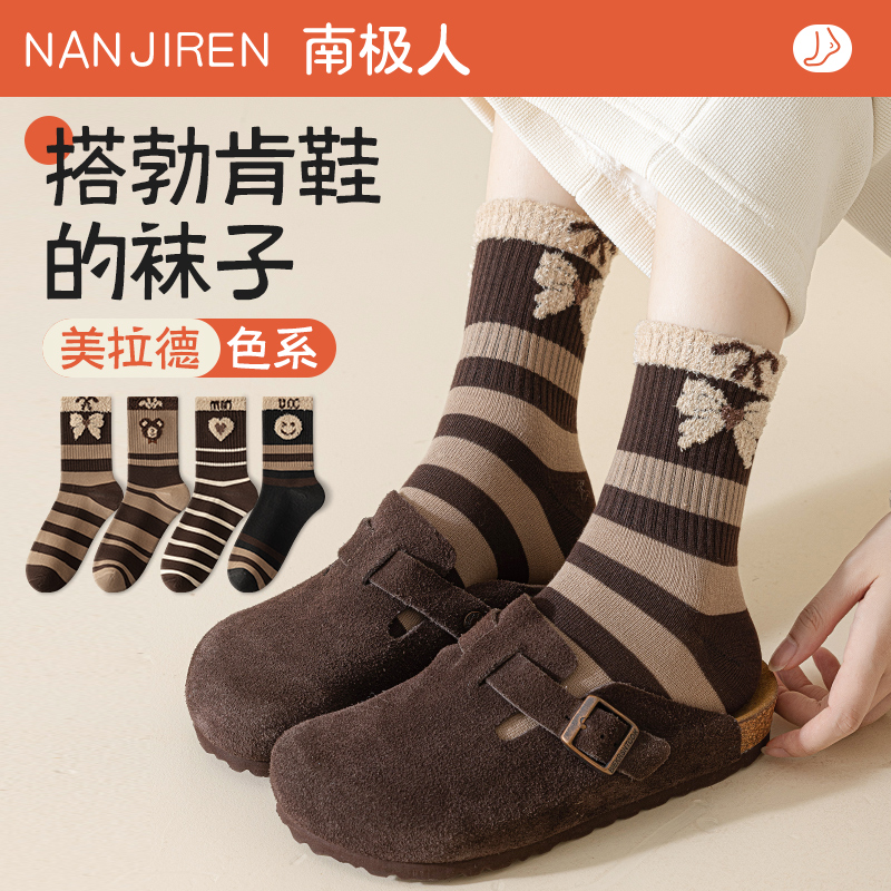 中筒袜纯棉无骨月子袜美拉德长筒长袜 2024秋冬季 配勃肯鞋 袜子女款