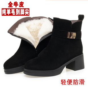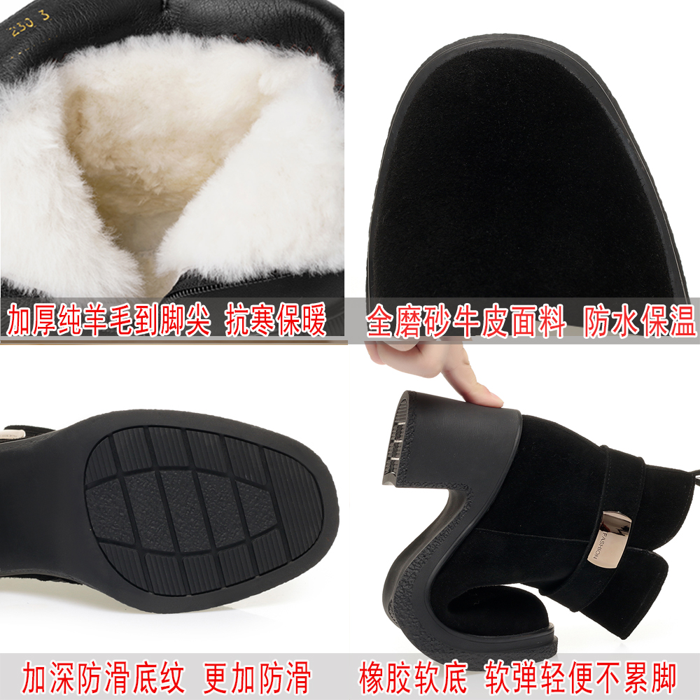 子女士真皮棉鞋 加绒女鞋 妈妈羊毛棉靴 冬季 磨砂皮靴子高跟短靴女款