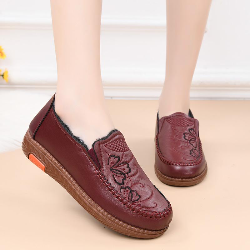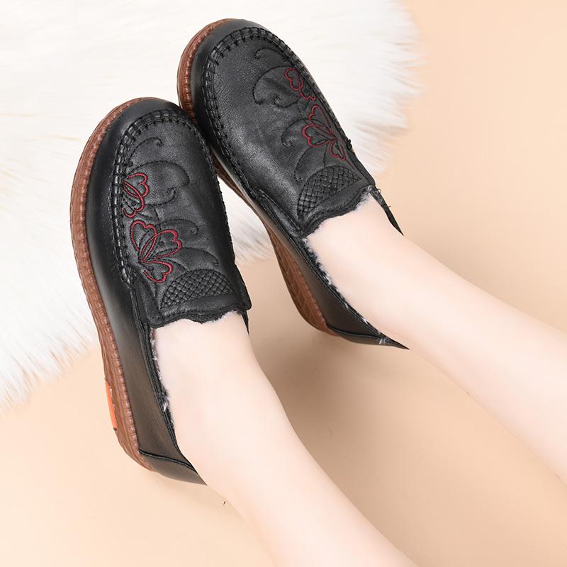 皮面防滑防水奶奶鞋 女冬加绒保暖中老年舒适妈妈鞋 老北京棉鞋 冬季