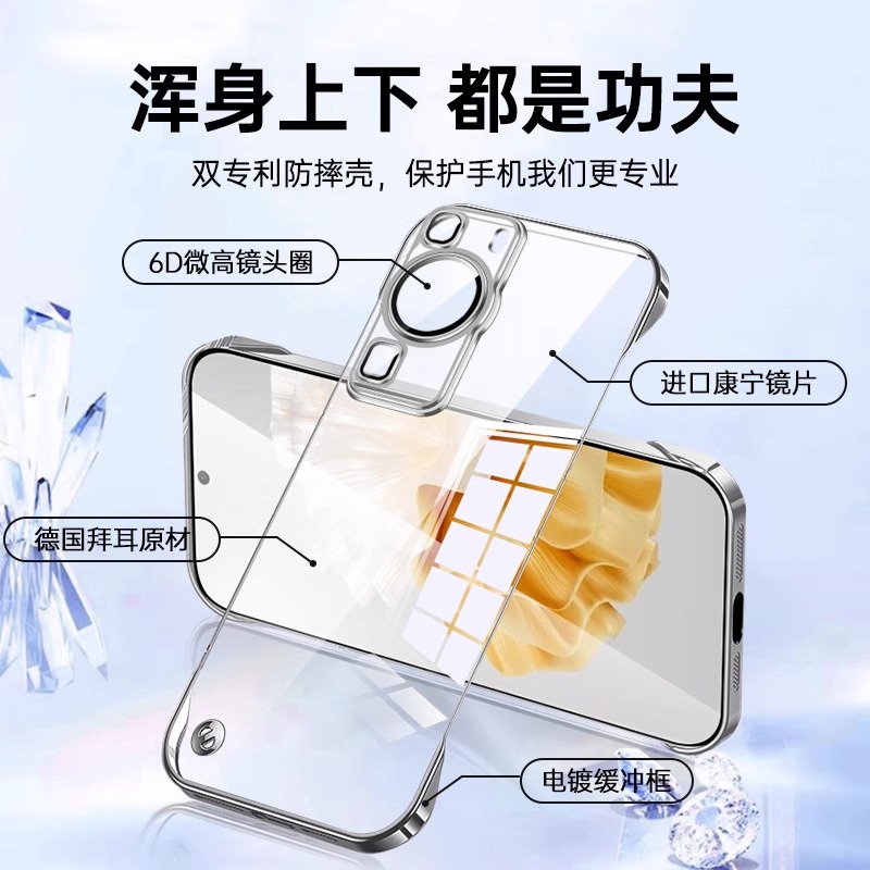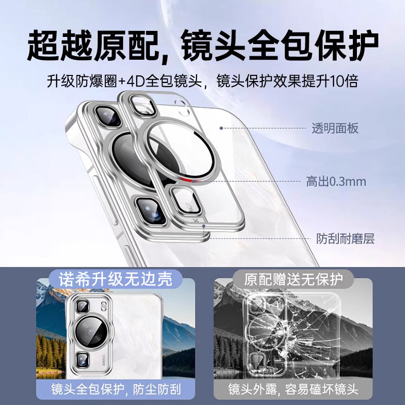 适用华为p60手机壳新款 无边框p60pro超薄电镀透明p50镜头全包防摔保护套p40自带镜头膜60art男女简约软壳por