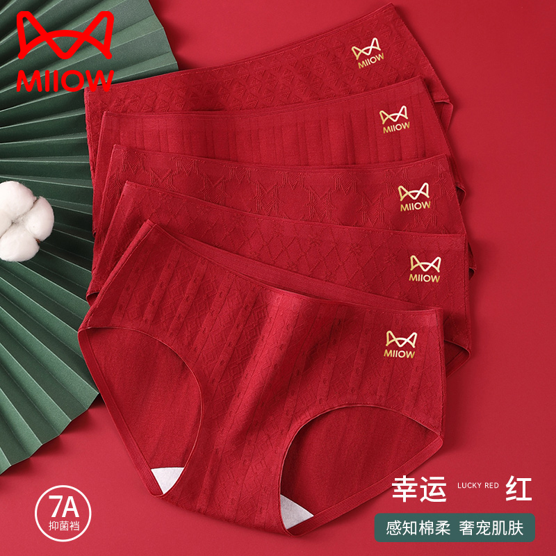 红色三角裤 有棵树莫代尔内裤 女纯棉全棉裆抗菌无痕透气中高腰大码