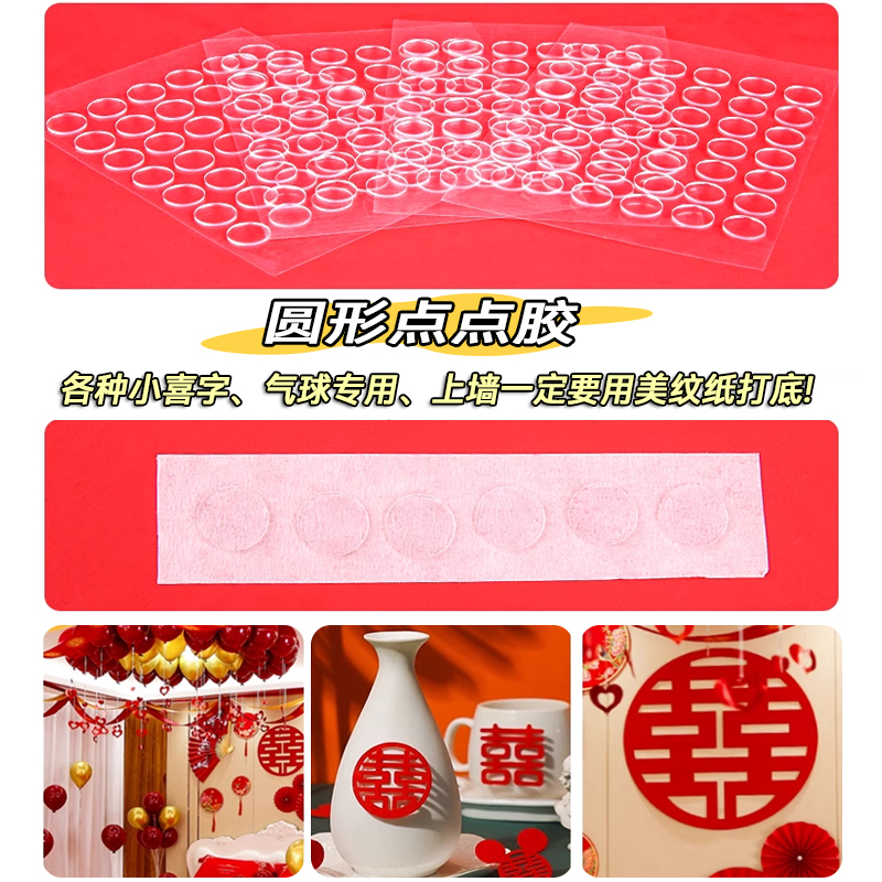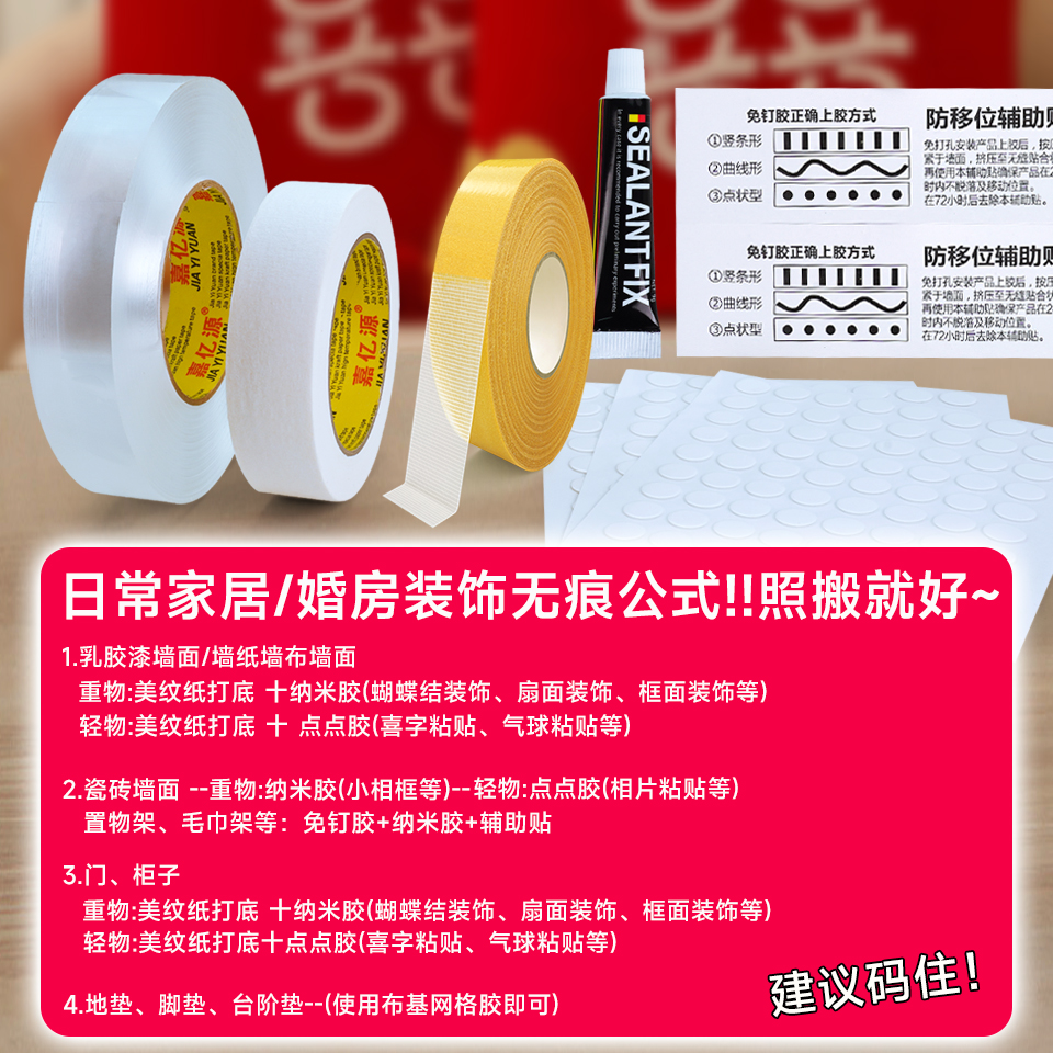 美纹纸胶带墙面无痕胶不伤墙婚房布置专用胶不留痕套装 饰胶婚庆专用胶带 结婚贴喜字点胶三件套美纹胶纸婚房装