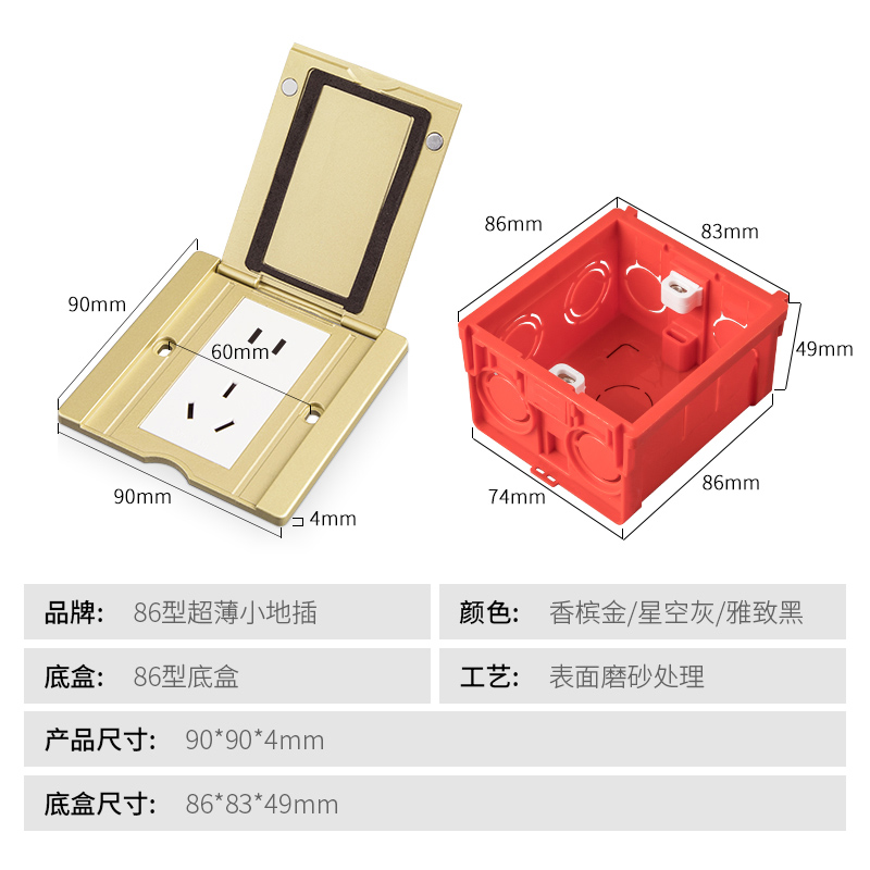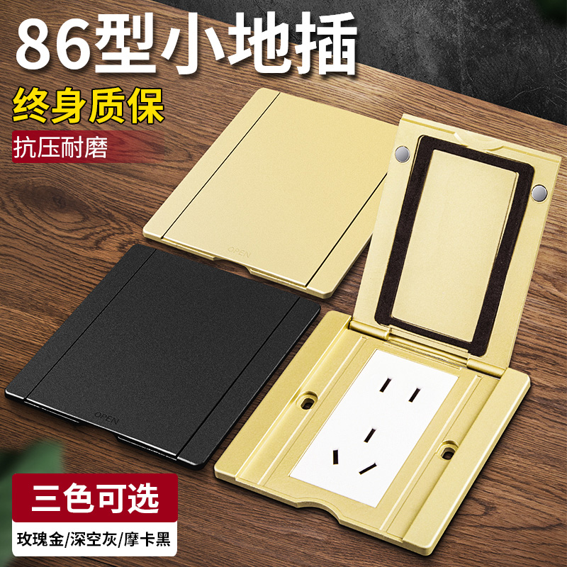 86型防水地插超薄翻盖隐藏式 五孔二三插电源网络地面地板隐形插座