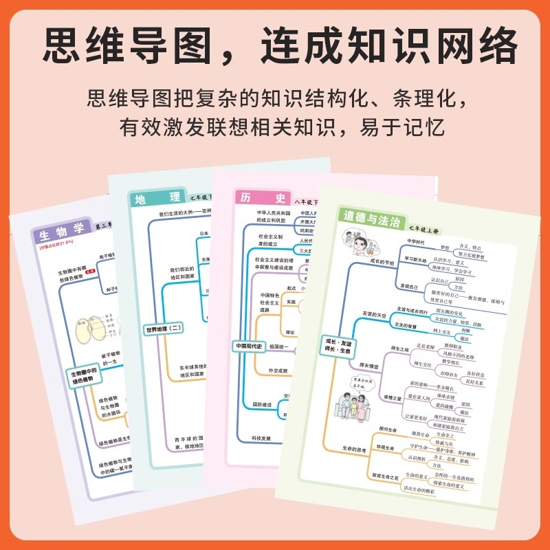 汉知简初中秒记小四门789年级初中通用政治地理生物历史文言文全解精炼文字常识初一二三中考复习知识汇总必背知识点高频考点击破