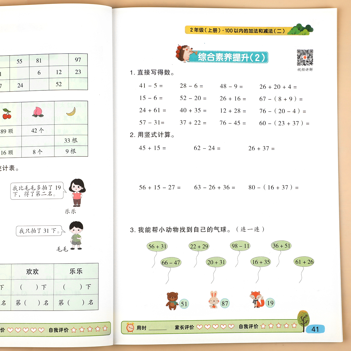 数学专项训练同步练习册口算题卡每日一练口算天天练100以内加减法混合运算RJ 小学2上学期人教版 二年级上册100以内 加法和减法