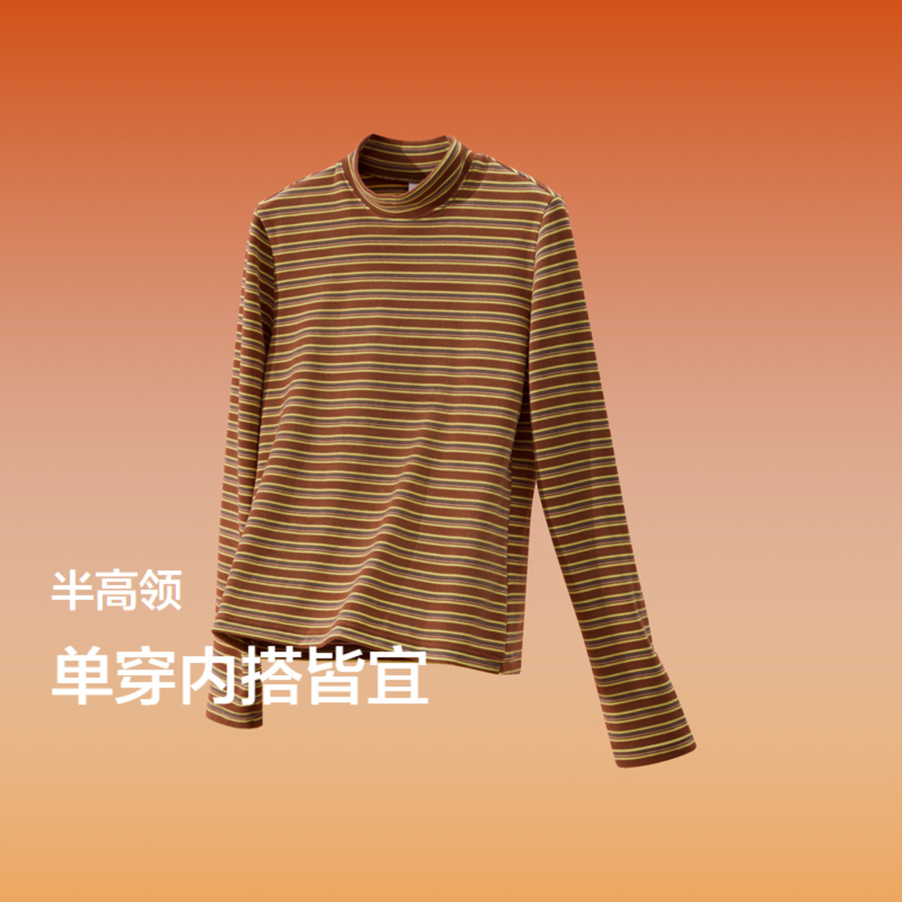 半高领内搭舒适打底衫 森马长袖 2024冬新款 磨毛条纹衫 T恤女修身