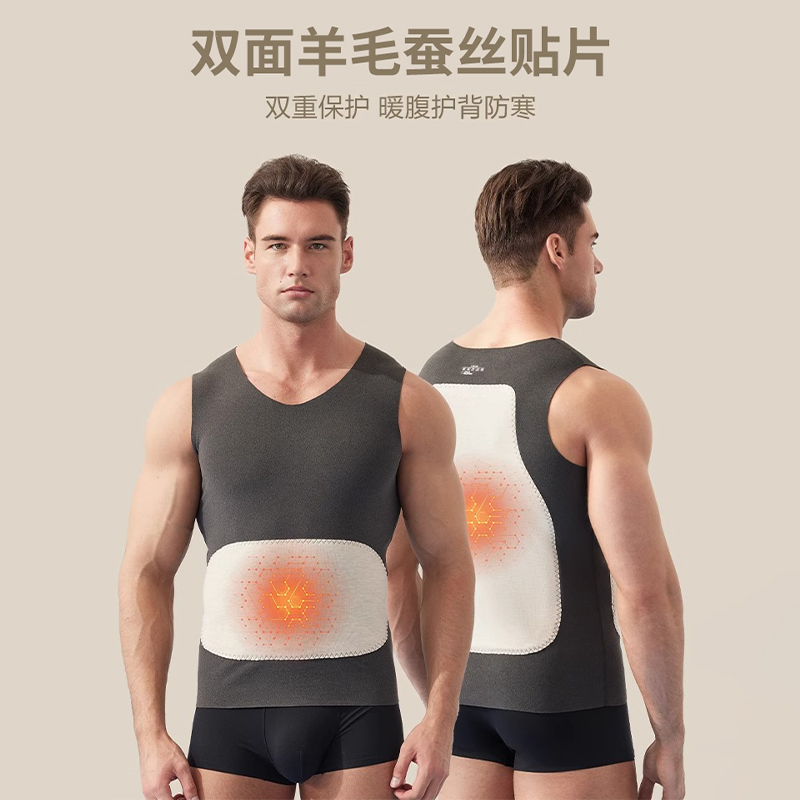 加厚含羊绒蚕丝贴片发热上衣秋冬新款 无痕保暖背心男士 内穿打底衫