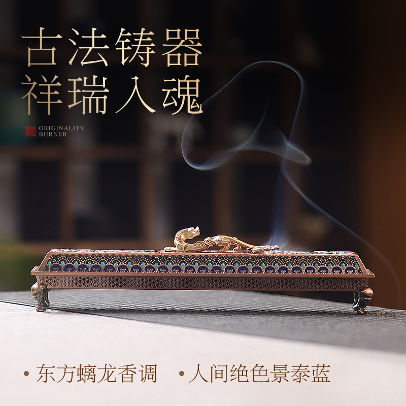 国风珐琅螭龙卧香炉家用线香盒室内茶道香插座上香送礼定制香薰炉