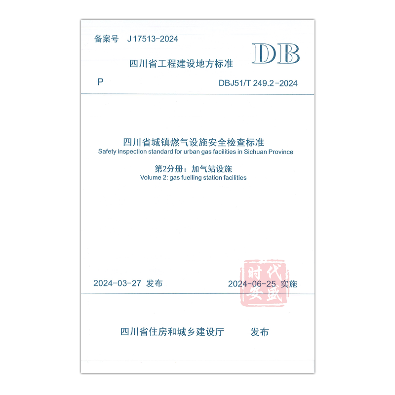 2024 249 现货 共5册 套装 四川省城镇燃气设施安全检查标准 249.1—249.5 DBJ51 正版