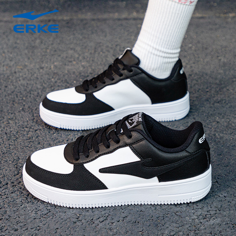 黑白熊猫女 空军一号皮面保暖防水秋冬小白鞋 鸿星尔克女鞋 休闲板鞋