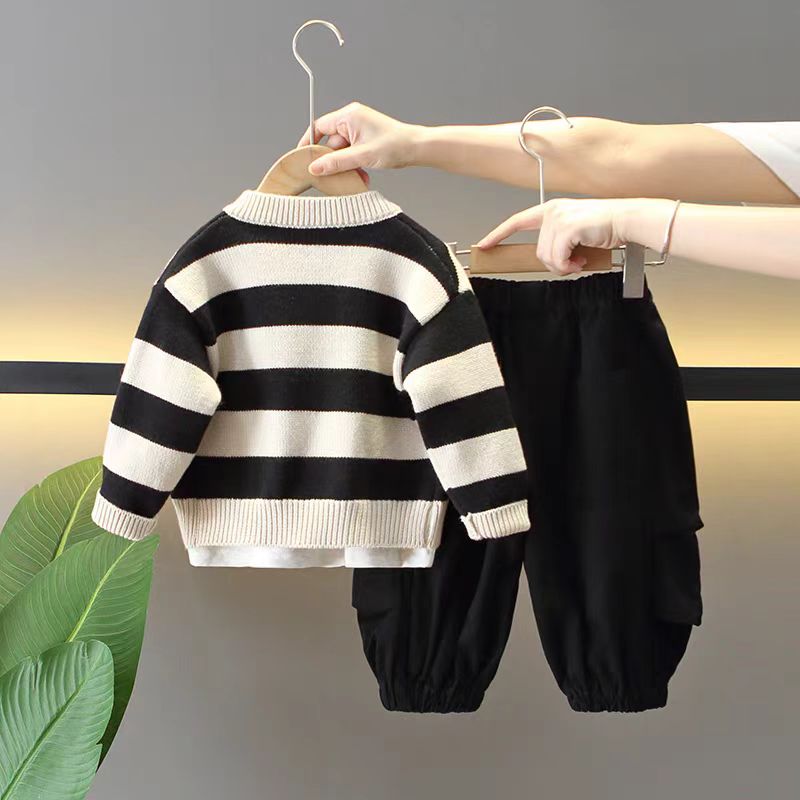 毛衣三件套宝宝秋装 男童春秋套装 长袖 洋气婴儿童时尚 衣服 2025新款