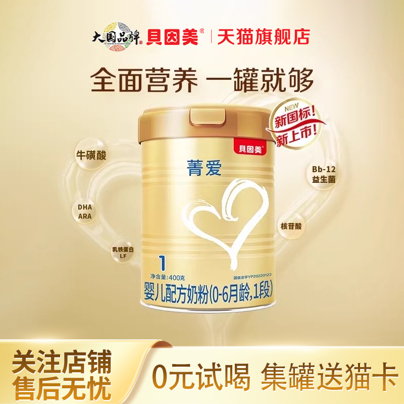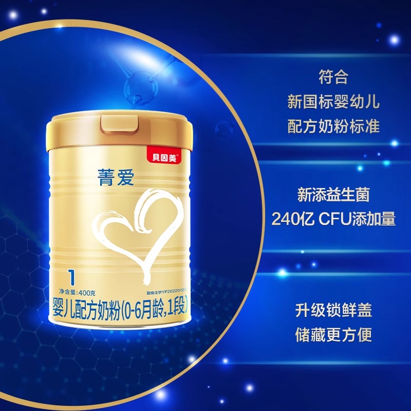 贝因美菁爱1段400克 婴儿配方奶粉段新生儿一段奶粉官方旗舰 罐装