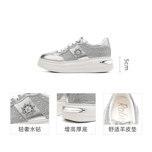 面银色厚底休闲板鞋 秋新水钻鞋 舒适RCL245925 百搭女鞋 诺贝达时尚