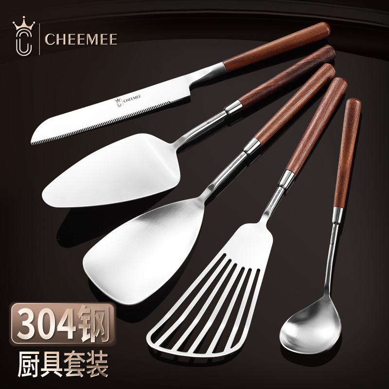 CHEEMEE 304不锈钢蛋糕铲胡桃木披萨铲芝士刀披萨刀专用三角铲子