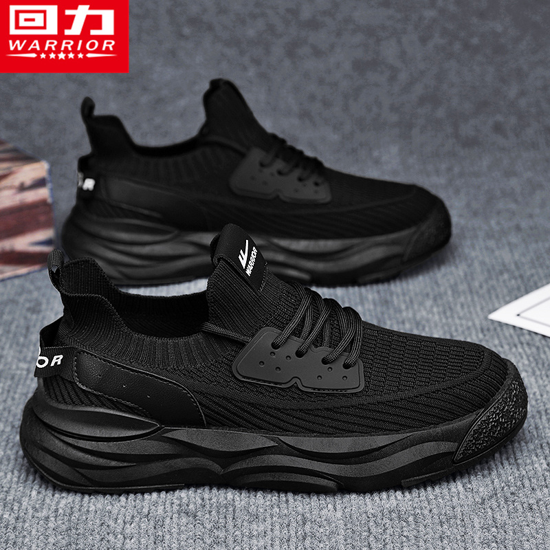 工作劳保增高老爹运动防滑潮鞋 透气飞织网面网鞋 夏季 回力黑色男鞋