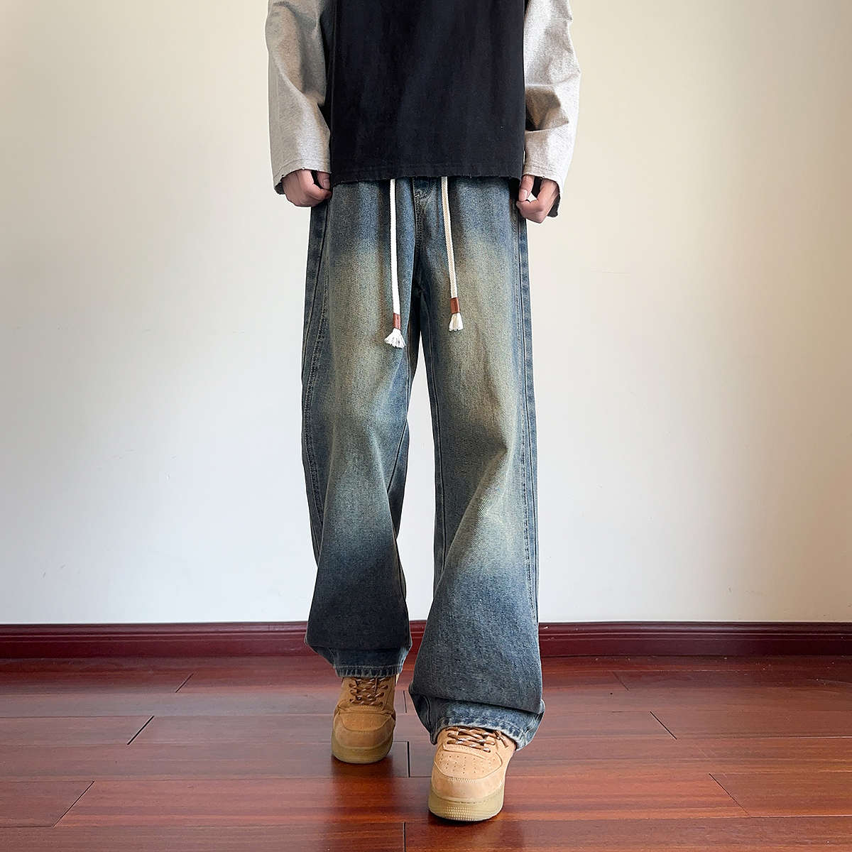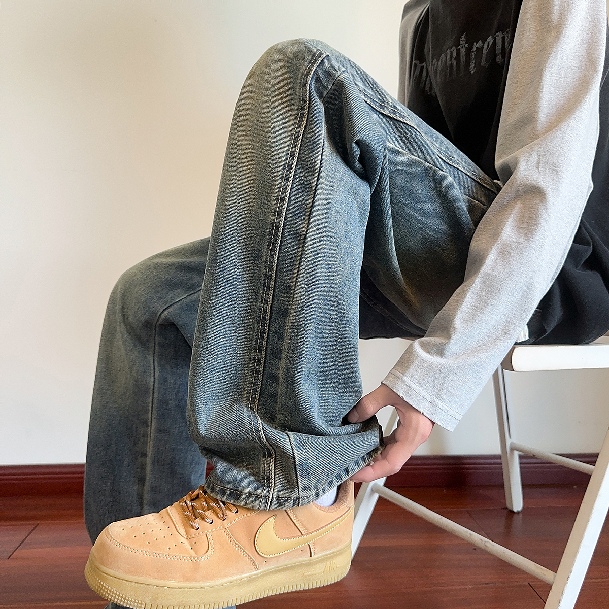 子男高街vibe宽松直筒长裤 男士 裤 男秋冬加厚保暖美式 男 加绒牛仔裤